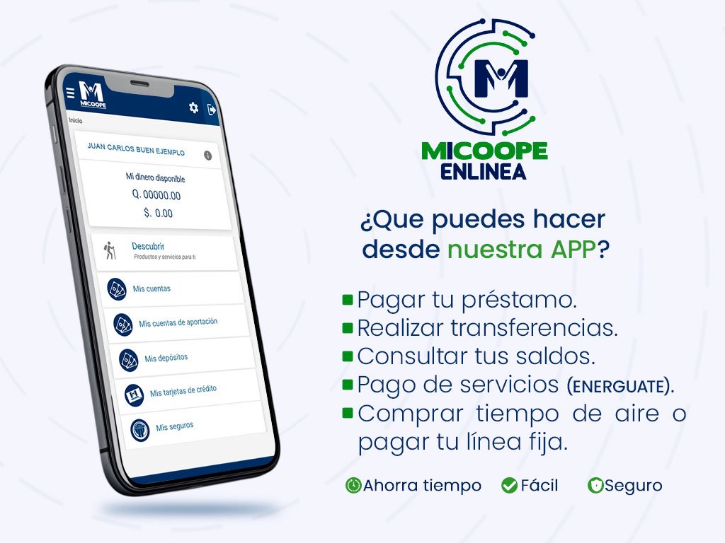 Es la plataforma que te permite realizar consultas y transacciones desde tu computadora o dispositivo móvil en cualquier lugar donde te encuentres, con MICOOPE en Línea podrás: Consultar los saldos y movimientos de tus cuentas de ahorro y aportaciones. Haz clic aquí